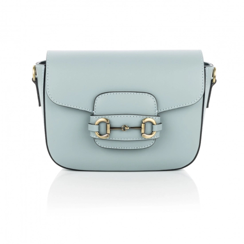 Сумка крос-боді шкіряна з широким ременем та великою пряжкою - блакитний