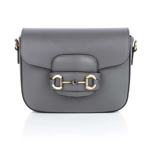 Сумка крос-боді шкіряна з широким ременем та великою пряжкою - темно-сірий