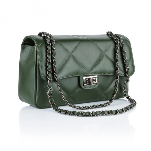 Базова сумка з крупною прошивкою шкіряна - темно-зелений