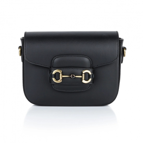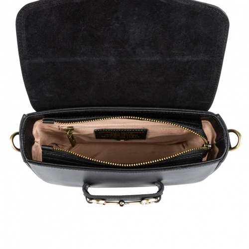 Сумка крос-боді шкіряна з широким ременем та великою пряжкою - чорний
